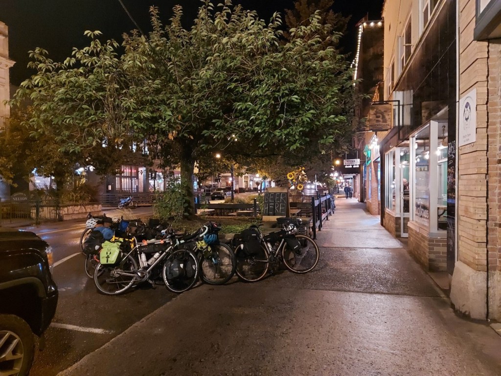 As we were returning to the hotel in the early afternoon the sidewalk and lobby were crawling with cyclists. I chatted a bit and learned they had come from Creston and were heading to Rossland after a couple days in Nelson. We met a friend on the street and she had come across something similar at the Savoy Hotel and heard “our luggage is coming later”. I remembered that there was a fair sized crowd of people and bikes in our lobby but no baggage was present. People watching of course, while I waited for Tami, I noticed what a cross-section of ages and body shapes within the road cyclists tribe. The two that stick out were a lady, tiny and grey haired, maybe looking older than she was but definitely 60+ and very much “in the pack” with others and younger arriving after. Good on ya! The other was a young couple. Maybe 30’s they were not in the way but not out of the steady steps traffic at the front door. While others were inside checking in and peeling off rain-gear (Which I was noting too, never having thought about being geared up for steady rain riding, this road riding stuff is another level from our rail-trails-shells-and-hats approach. They are sealed right up head to toe) they were both on their phones and him not looking impressed. We couldn’t know what they were doing, thinking, dealing with of course but though she looked “ok” his facial expression was very much dejected and/or pissed off. Contrasting the eager “let’s get checked in and see Nelson” of their road mates inside, he looked more like “we’re finally here and thank fuck”. Tami came down and we left talking about the whole interesting scene.